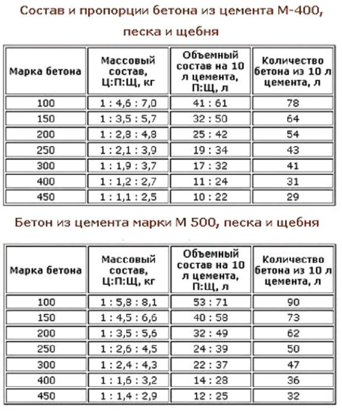 Необходимые пропорции материала можно посмотреть в таблицах: