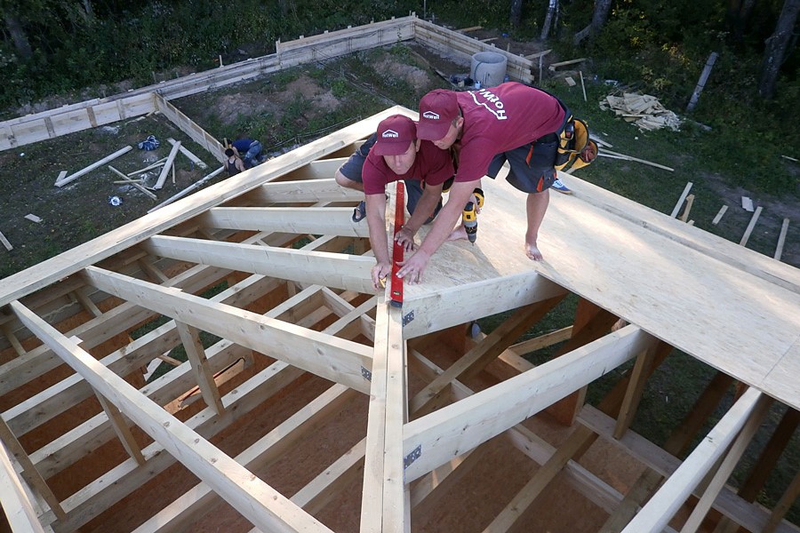 - Прочная увязка стропил листами ОСП увеличивает шаг между тяжёлыми несущими балками и снижает общий вес крыши и нагрузку на опоры.
