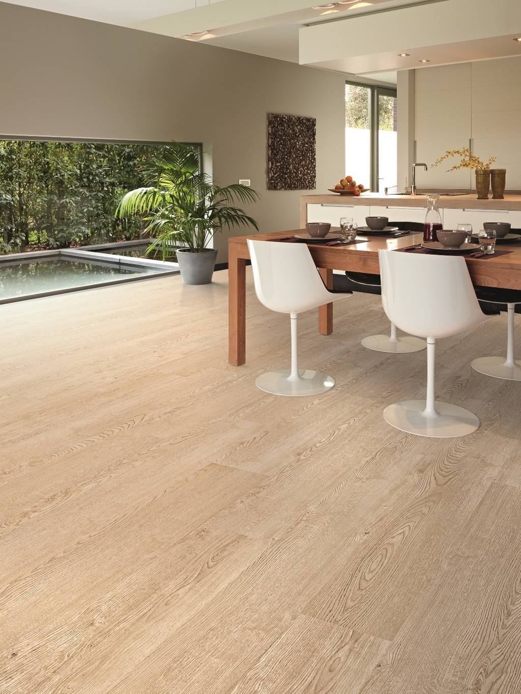 Поэтому на кухне его лучше использовать в столовой зоне, а зону готовки все же выложить плиткой или керамогранитом.