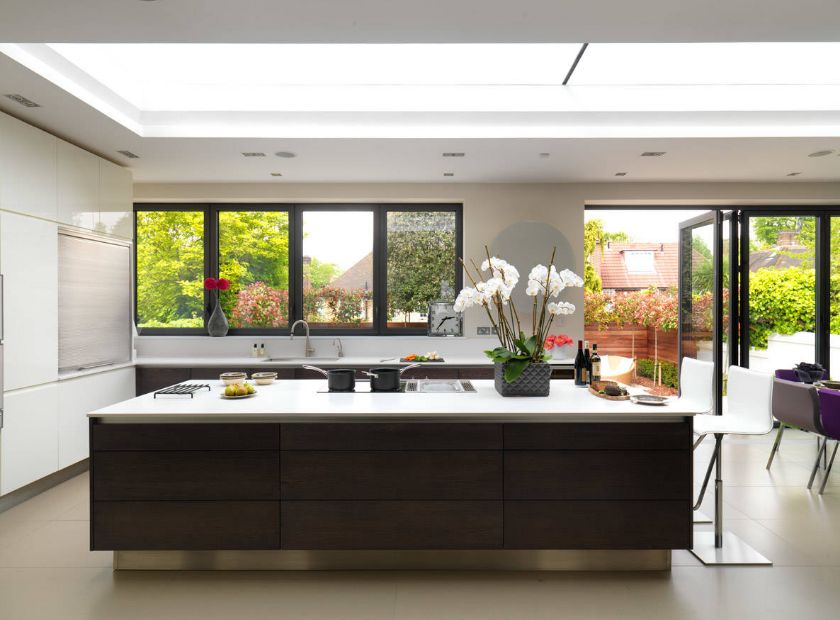 Акцент также может быть строго на окнах и дверях.Черная оправа может придать им более классический вид, но также может придать им индустриальный вид. В некоторых случаях это может быть желательной деталью. Критталл определенно может помочь с этим. Однако эта стратегия не является наиболее подходящей, если целью является создание минималистичного современного дизайна с акцентом на плавные переходы и панорамные виды.