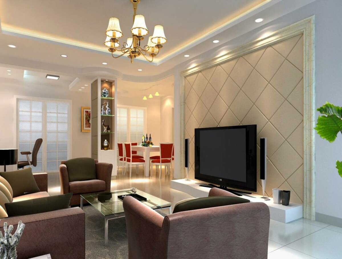 7. Простой настенный потолок для гостиной: