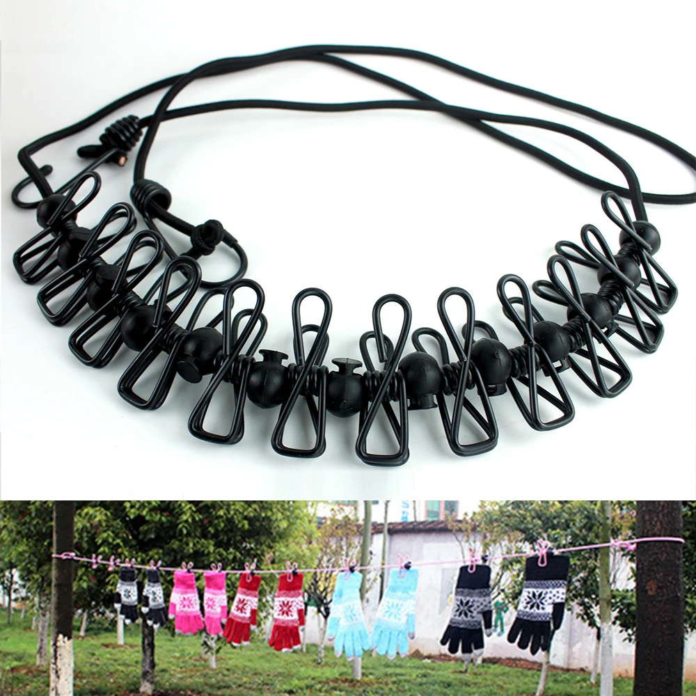 12-контактная портативная веревка для белья, эластичная выдвижная эластичная веревка для белья, веревка для одежды на заднем дворе, в отпуск