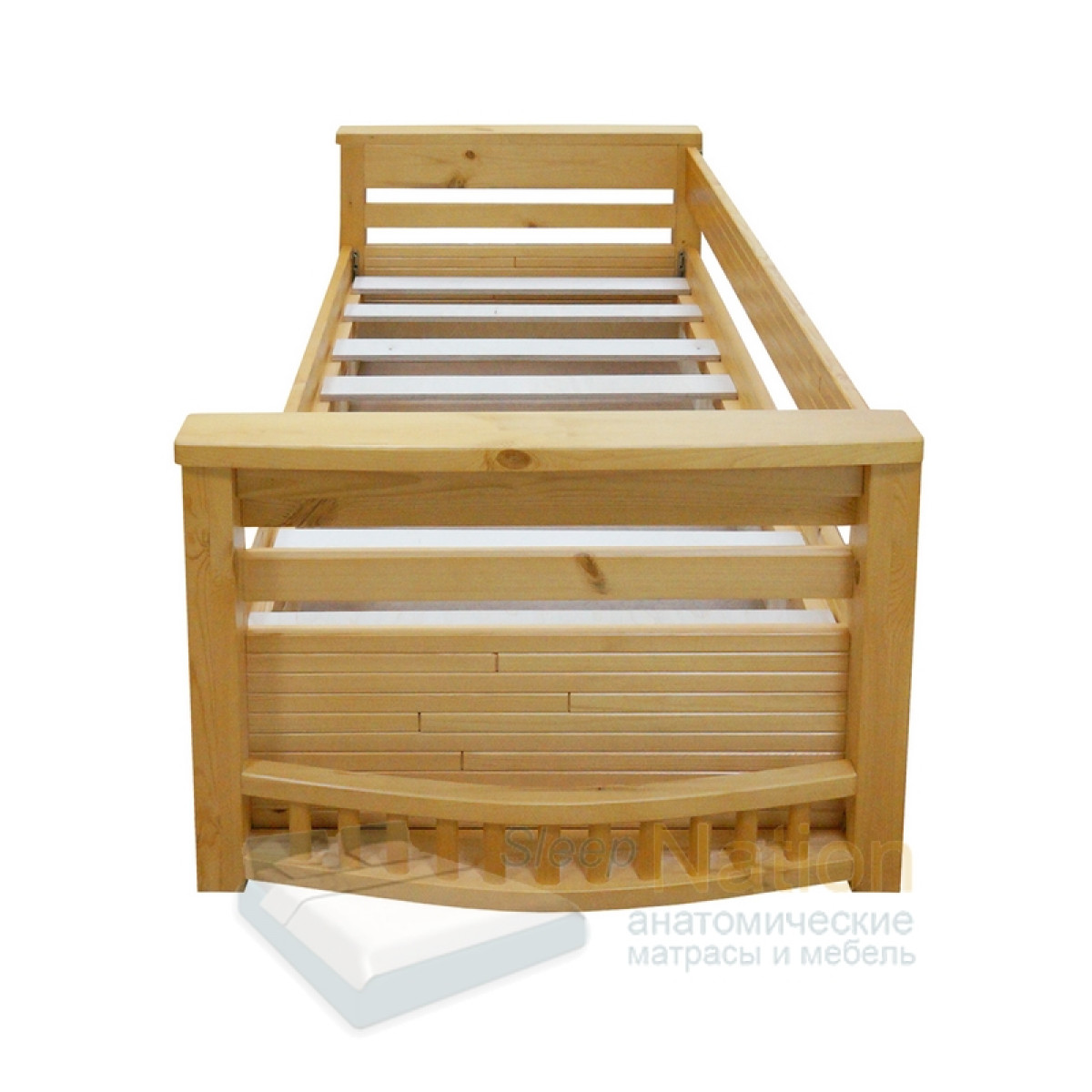 - В первую очередь, стоит сказать об экологичности таких изделий. В натуральной древесине присутствуют только такие же натуральные компоненты – химикаты отсутствуют. Благодаря этому качеству, деревянная мебель для сна не будет оказывать негативного влияния на здоровье ребёнка, даже если за окном стоит жаркое лето.