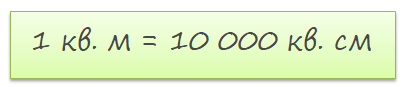 Но у нас квадратные сантиметры поэтому \(100*100=10\;000\), то есть в одном квадратном метре \(10\;000\) квадратных сантиметров.