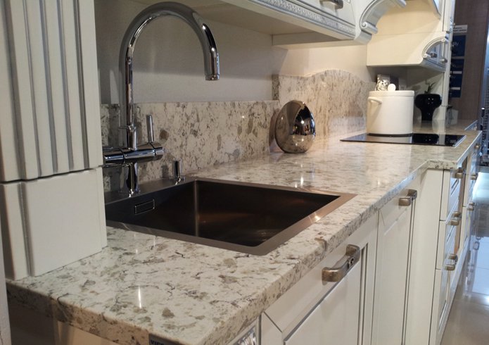 Искусственный камень прочнее натурального и неприхотлив в уходе. Боится высоких температур и абразивной чистки.