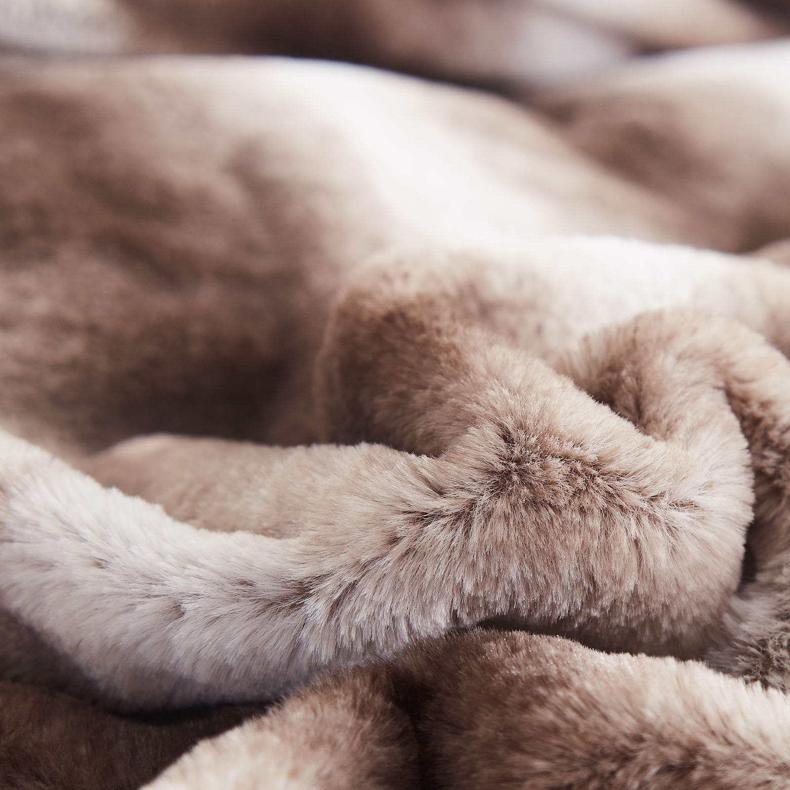 - Также большой популярностью пользуются экземпляры, в которых искусственный мех является однотонным и имитирует натуральный. Чаще всего встречаются пледы, повторяющие шкуру рыси, медведя, яка, шиншиллы, лисицы или енота.