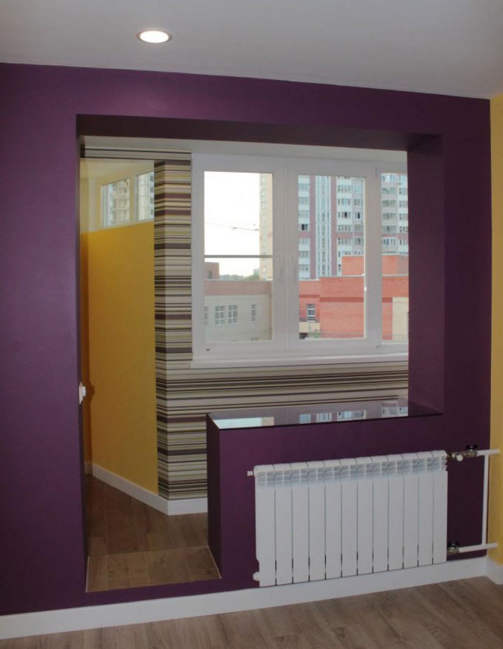 При простом расширении комнаты без демонтажа несущих конструкций и согласования в коммунальных службах задача сводится к удалению окон, рам, дверей и дверных коробок и последующей отделке и утеплению получившегося пространства.