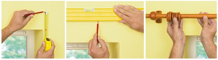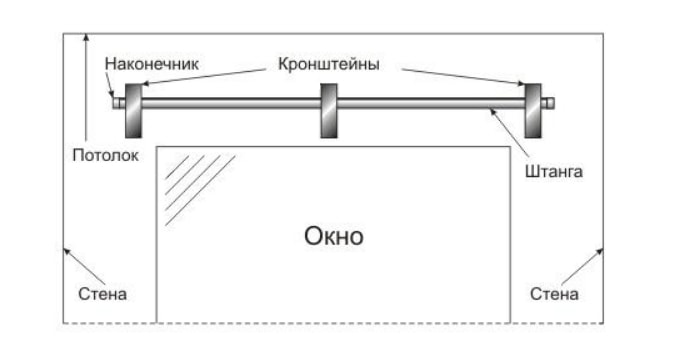 Длина опора должно при этом быть немного больше, чем ширина оконного проема. Это позволит качественно прикрывать его шторами.