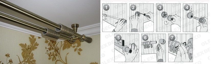 Самым сложным по сборке является двухрядный карниз. Данный процесс состоит из следующих последовательных шагов: