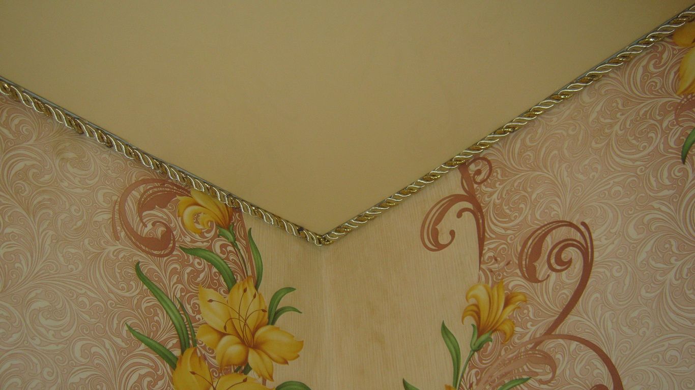 Сначала клеят обои или делают натяжной потолок? Если уже потолки натянуты, а хочется обновить стены и переклеить обои, то делать это нужно очень аккуратно. Вытирайте сразу клей с потолка, пока он не засох. Если все-таки верх поклеен неточно, то можно будет закрыть карнизом, хотя это не самый удачный вариант, лучше его не использовать, но на заметку стоит взять, если вы занимаетесь ремонтом самостоятельно. Лучше всего могут подойти из пенополиуретана, да и монтируются они намного проще. Также такой метод очень будет кстати, если потолок уже монтирован и необходимо удалить старые обои.