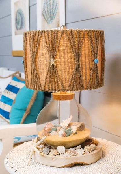 - Торшер из пенька создает впечатление отсутствия гравитации. Здесь части абажура как будто парят в воздухе.