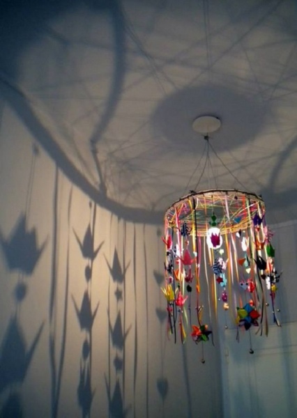 Для детской комнаты выбор необычных светильников особенно велик. Например, в комнате девочки ярко-розовая люстра будет отлично сочетаться с таким же ярким элементом, например, с ковром.