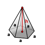 Объем пирамиды равен одной трети произведения площади основания S (ABCDE) на высоту h (OS).