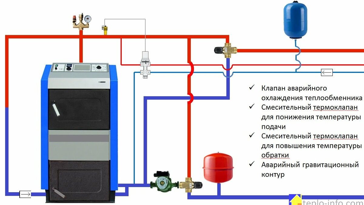 Одновременно, такая обвязка является способом защиты от перегрева системы, тогда как другой контур отключится из-за отсутствия или перепада напряжения в сети.