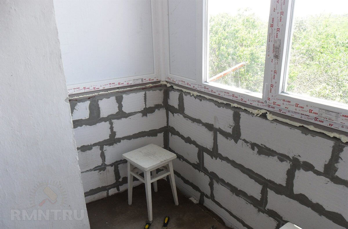 - демонтируется старое покрытие, если оно имеется на стенах балкона;