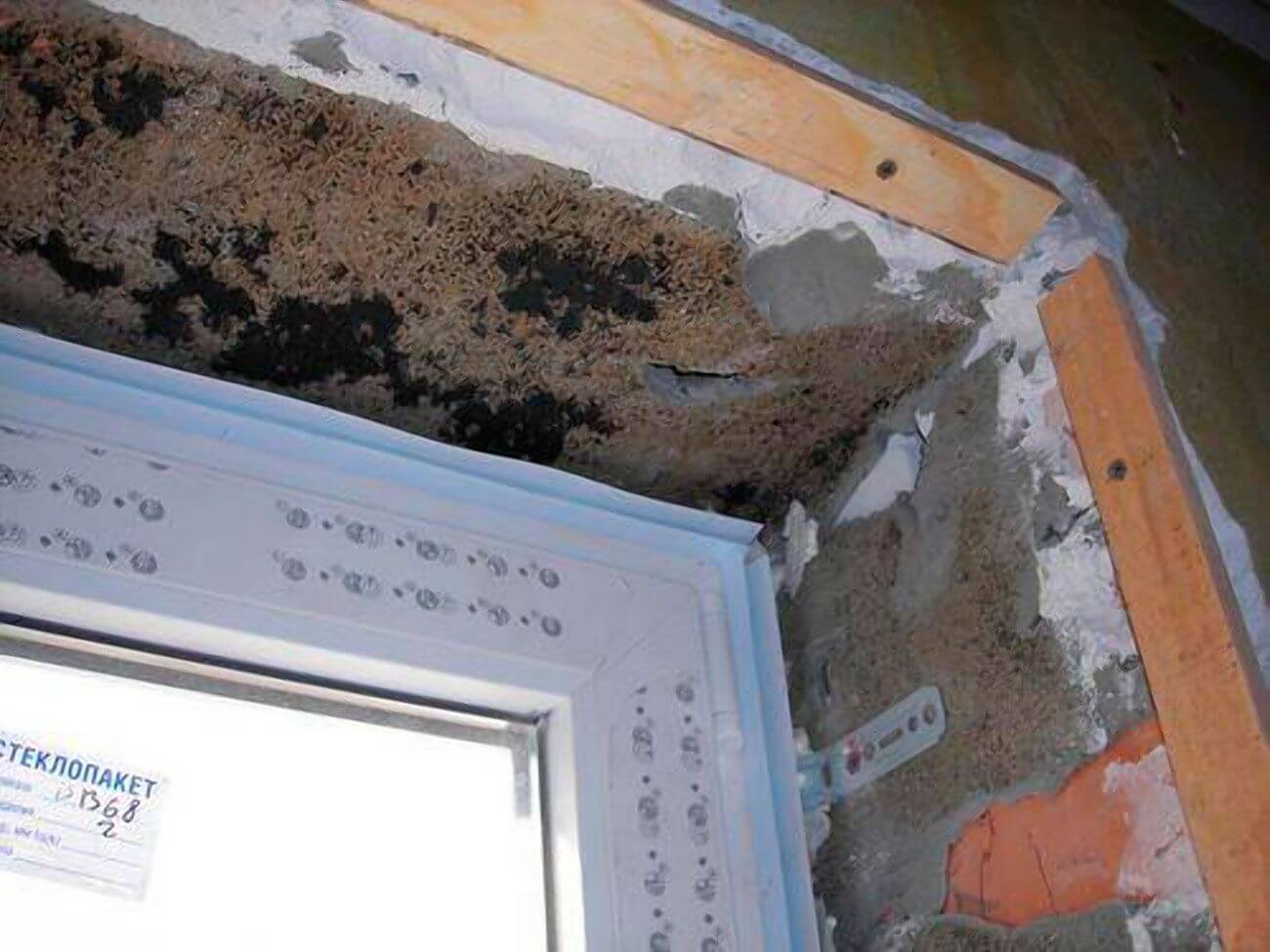 - все зазоры, щели, трещины заделывают густым цементным раствором, большие отверстия сначала заполняют обрезками пенопласта. Вертикальные швы задувают монтажной пеной, излишки которой после высыхания аккуратно срезают острым ножом. Щели по периметру оконного проема также рекомендуется запенивать, а не замазывать раствором. При эксплуатации окна, сухой раствор будет трескаться и крошиться, и со временем придется снова избавляться от щелей.