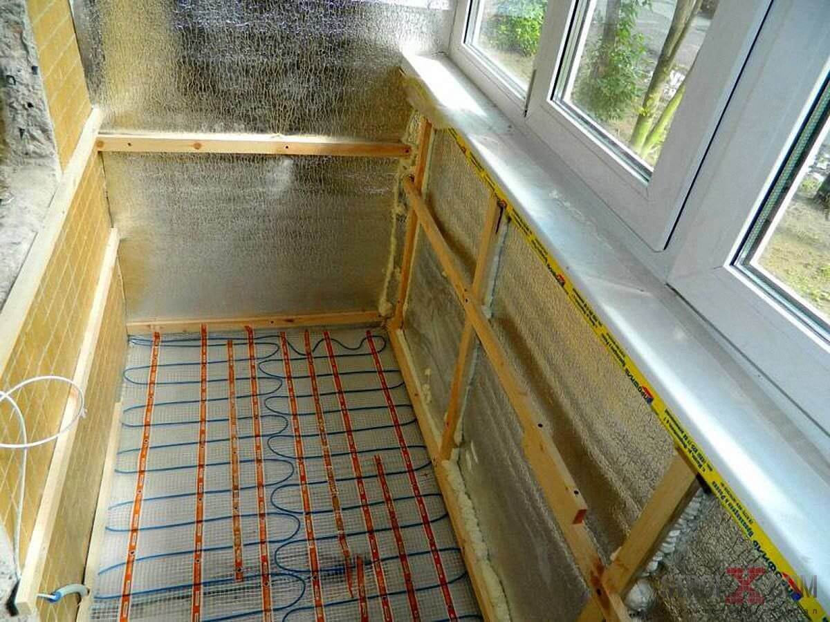 - Если планируется утепление стен балкона, то стоит отдать предпочтение деревянному варианту. Для ее сооружения используются бруски 4х4 см, 4х5 см, 5х5 см — для стоек, и рейки 2х4, 2х5 см для поперечных полос.