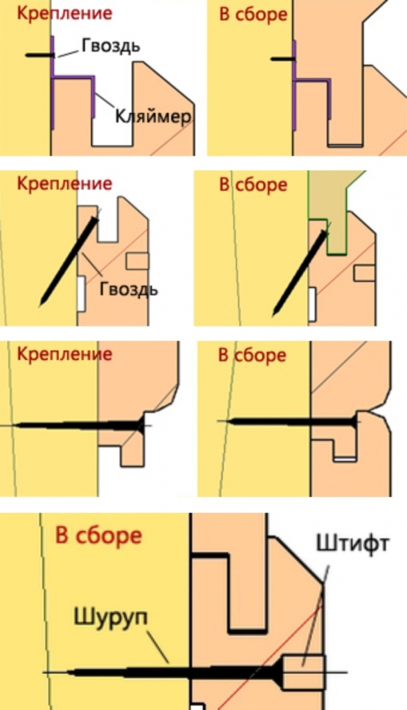- При установке планок есть небольшая хитрость: сначала забить гвозди в рейку, затем нанести клей, а затем прибить рейку.