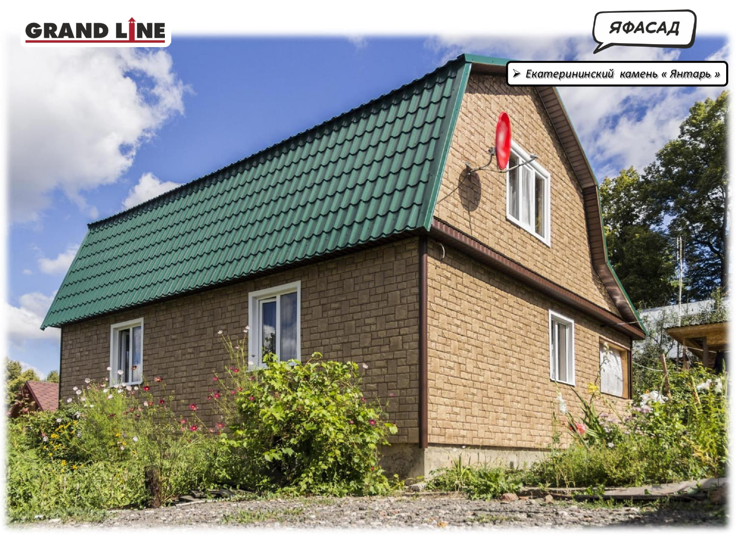 Отделка фасада сайдингом: низ Камень жженый, верх Камень белый | Отделка Акриловым сайдингом — Дуб светлый |