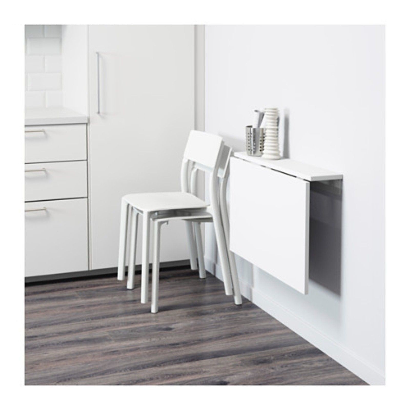 Стол в сложенном виде почти незаметен, легко складывается. Столешница очень прочная и надежная. Рассчитано изделие для размещения 2- человек. В сложенном виде стол от стены отходит на 3 см. Смотрится в разложенном виде очень стильно и современно.