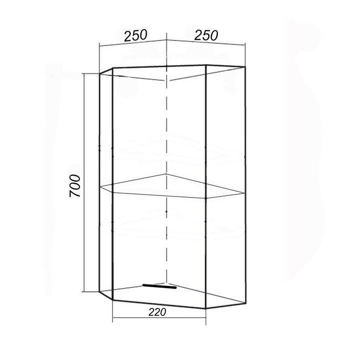 Прелесть такого шкафа в том, что он занимает угол, который вряд ли можно использовать более рационально. Боковыми стенками пенал касается двух смежных стен, а его передняя часть имеет форму трапеции. Впереди находится распашная дверца, которая может быть зеркальной, стеклянной, выполненной из ДСП или МДФ.