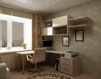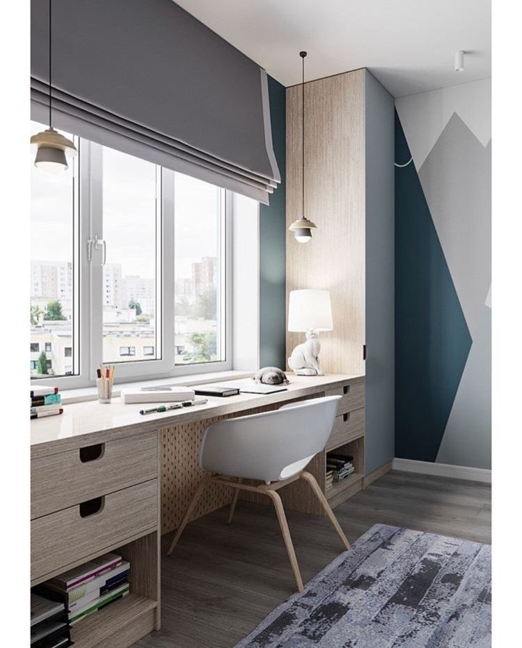 Он необходим как атрибут личного пространства и место для выполнения домашних заданий. Лучше всего располагать его возле окна, ведь оно является источником естесственного света. Также такое расположение станет хорошим вариантом, если хотите максимально использовать полезную площадь комнаты.