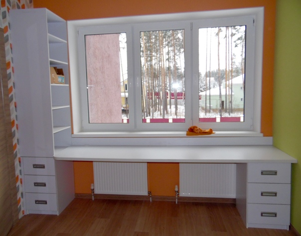 - Продумывая стол под окном, нужно брать в расчет отопительную батарею под ним. Чтобы она не мешала придвинуть мебель вплотную к окну.