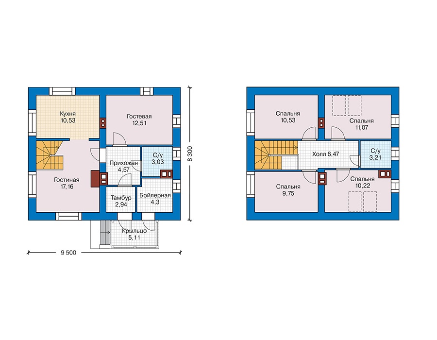 | Стены 2-го этажа: | Строганный профилированный брус 95х145мм |