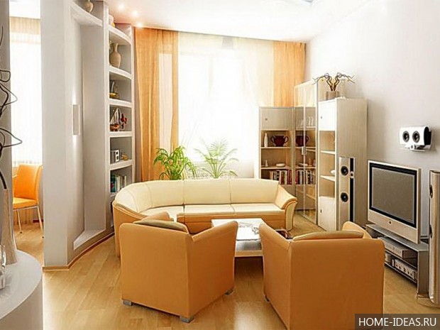 Единственная жилая комната однокомнатной квартиры должна одновременно выполнять функции места для отдыха и места для приёма гостей.