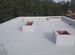 После выравнивания утеплителя, над ним делают 2-3 см стяжку из портландцемента. Это нужно сделать, чтобы непреднамеренно не попортить крышу, в результате зимней очистки от снега. После высыхания стяжки, она покрывается битумной грунтовкой, а после этого укладывают рулонное гибкое кровельное покрытие.
