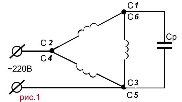 Подключение 3-фазного двигателя в сеть 220В через пусковой и рабочий конденсаторы