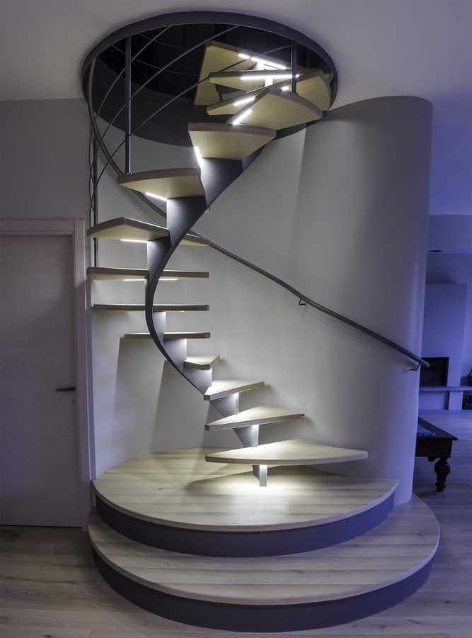 Для винтовых лестниц в обязательном порядке требуется подсветка каждой ступени.