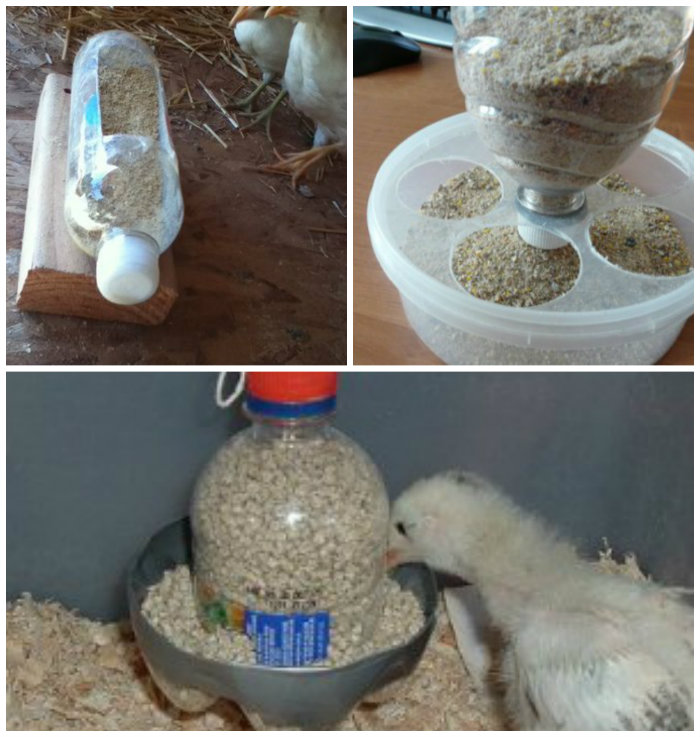Емкости из пищевого пластика могут послужить для изготовления незатейливых и очень удобных автокормушек и автопоилок. Вам всего лишь понадобятся: