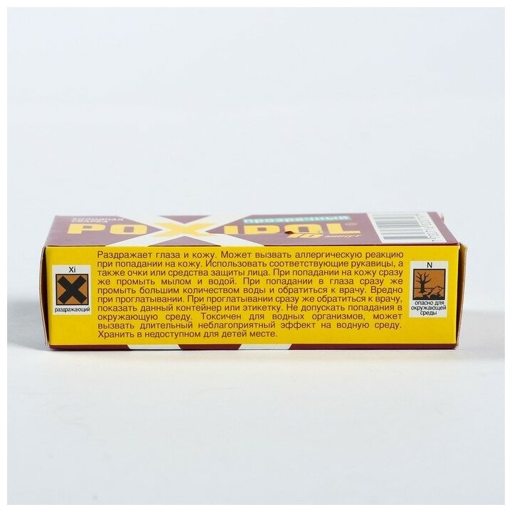 - Красная коробка, в которой находится прозрачный Поксипол, отличающийся средней густотой, диэлектрическим свойством;