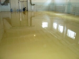 - Эпоксидная – стойка к истиранию и ГСМ, повышает прочность и адгезию, может наноситься на еще влажный бетон, подходит для внешних/внутренних работ, быстро твердеет (поэтому работы проводятся быстро). Обычно пол покрывают в 2 слоя, есть возможность пигментации, но выбор цветов не слишком большой. Расход в пределах 300 граммов на м2, сохнет в течение суток.