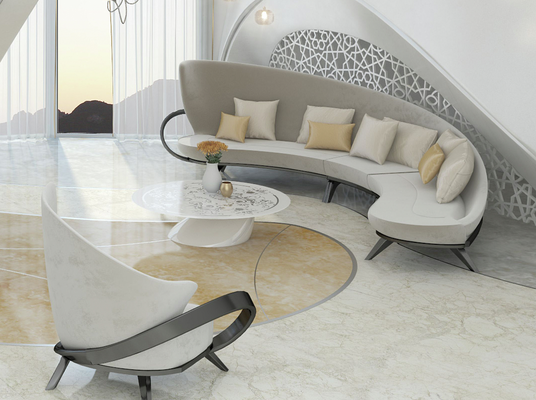 ΠΠΎΠ»ΡΠΊΡΡΠ³Π»ΡΠΉ Π΄ΠΈΠ²Π°Π½ Π² Π³ΠΎΡΡΠΈΠ½ΡΡ ΡΡΠ΅Π±ΡΠ΅Ρ Π½Π΅ΡΡΠ°Π½Π΄Π°ΡΡΠ½ΡΡ Π΄ΠΈΠ·Π°ΠΉΠ½Π΅ΡΡΠΊΠΈΡ ΡΠ΅ΡΠ΅Π½ΠΈΠΉ Π΄Π»Ρ ΠΊΠΎΠΌΠ½Π°ΡΡ, Π½ΠΎ Π²ΡΠ΅ ΡΡΠΈΠ»ΠΈΡ ΠΎΠ±ΡΠ·Π°ΡΠ΅Π»ΡΠ½ΠΎ ΠΎΠΊΡΠΏΡΡΡΡ. Π’Π°ΠΊΠ°Ρ ΠΌΠ΅Π±Π΅Π»Ρ ΠΏΡΠΈΠ΄Π°Π΅Ρ ΠΏΠΎΠΌΠ΅ΡΠ΅Π½ΠΈΡ ΡΡΡ ΠΈ ΠΎΡΠΎΠ±ΡΠΉ ΡΠ°ΡΠΌ: ΠΈΠ·-Π·Π° ΠΎΡΡΡΡΡΡΠ²ΠΈΡ ΠΎΡΡΡΡΡ ΡΠ³Π»ΠΎΠ² ΠΈ ΠΆΠ΅ΡΡΠΊΠΈΡ Π»ΠΈΠ½ΠΈΠΉ ΠΎΠ½Π° ΠΊΠ°ΠΆΠ΅ΡΡΡ Π±ΠΎΠ»Π΅Π΅ ΡΡΡΠ½ΠΎΠΉ ΠΈ ΡΠ°ΠΊ ΠΈ ΠΌΠ°Π½ΠΈΡ ΠΏΡΠΈΡΠ΅ΡΡΡ. Π Π½Π΅ΠΎΠ±ΡΡΠ½Π°Ρ Π³Π΅ΠΎΠΌΠ΅ΡΡΠΈΡ ΠΏΡΠΎΡΡΡΠ°Π½ΡΡΠ²Π°, Π·Π°Π΄Π°Π½Π½Π°Ρ Π΅Ρ, ΠΎΡ Π°ΡΠ°ΠΊΡΠ΅ΡΠΈΠ·ΡΠ΅Ρ Π²Π°Ρ ΠΊΠ°ΠΊ ΡΠ²ΠΎΡΡΠ΅ΡΠΊΡΡ Π½Π°ΡΡΡΡ ΠΈ ΡΠΎΠ·Π΄Π°ΡΡ Π½Π΅ΠΏΠΎΠ²ΡΠΎΡΠΈΠΌΡΡ Π°ΡΠΌΠΎΡΡΠ΅ΡΡ. ΠΠΎΠ²ΠΎΡΡΡ, ΡΡΠΎ Π² ΡΠ°ΠΌΠΎΠΉ ΡΠΎΡΠΌΠ΅ ΠΏΠΎΠ»ΡΠΊΡΡΠ³Π° Π΅ΡΡΡ ΡΡΠΎ-ΡΠΎ Π·Π°Π³Π°Π΄ΠΎΡΠ½ΠΎΠ΅ ΠΈ ΠΏΡΠΈΡΡΠ³Π°ΡΠ΅Π»ΡΠ½ΠΎΠ΅!