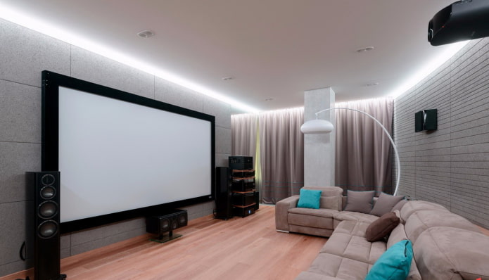 Такой прием очень хорошо подходит для комнат, потолки в которых довольно низкие. Если удачно расположить светильники по периметру, можно визуально сделать помещение вдвое больше.