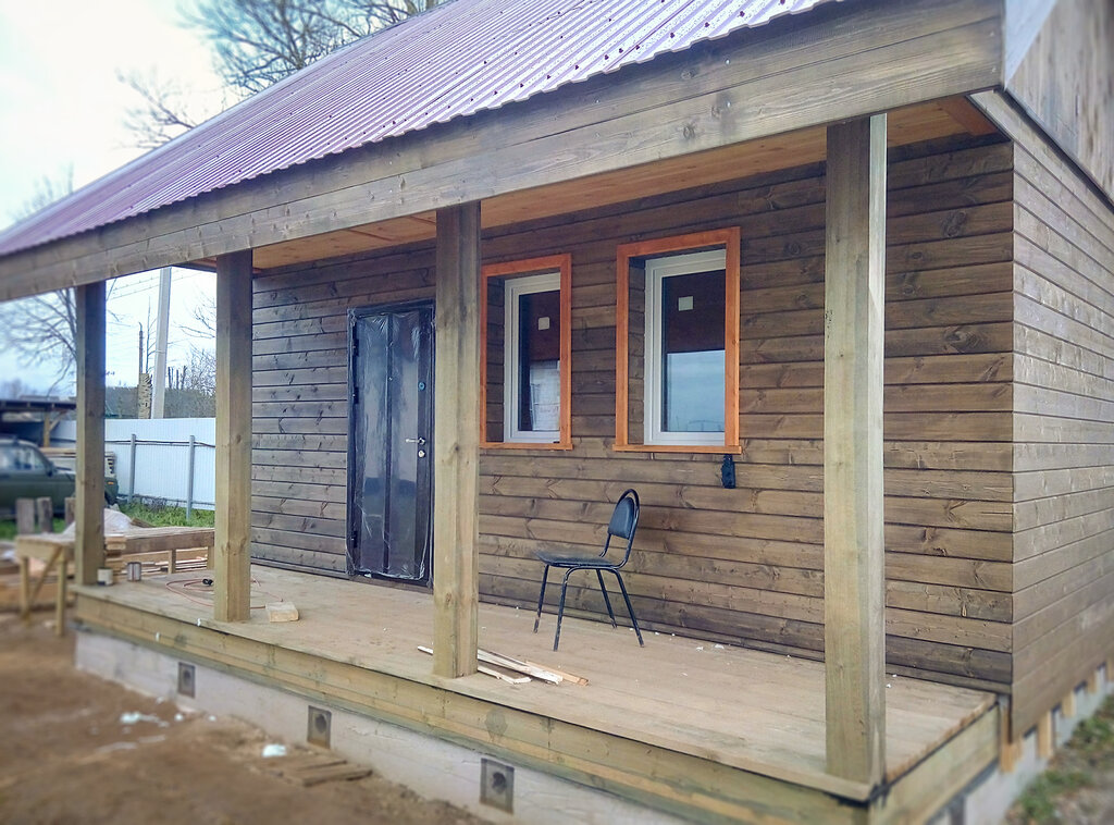 Наиболее доступным и простым способом строительства будет каркасная конструкция. Она не уступает по надежности капитальным объектам, но возводится в короткие сроки. В деревянном строении каркасом могут быть бревна или брус, для обшивки используются панели ДСП с вагонкой или блок-хаусом.