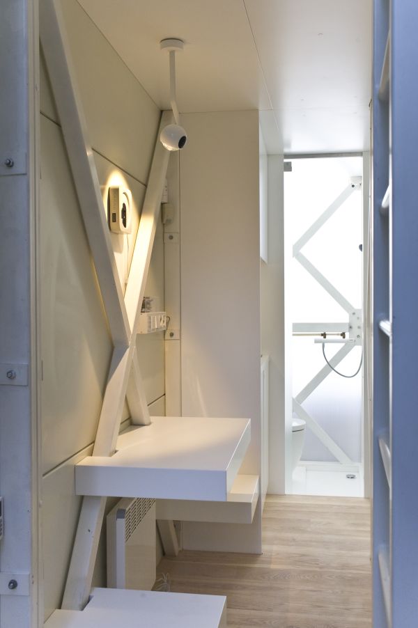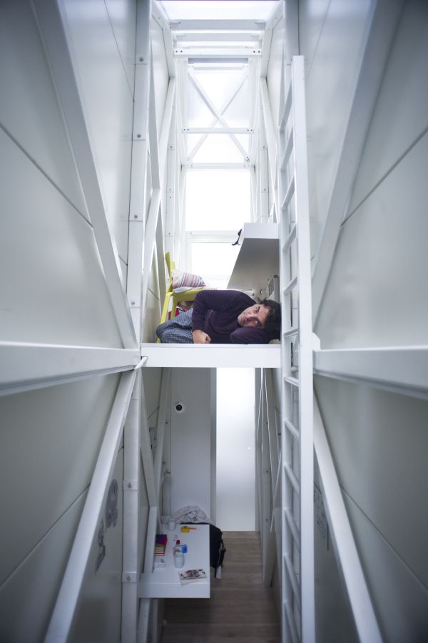 Если положить его на бок, появляется возможность спать на прикрепленной к стене кровати. Конструкция легко складывается и перемещается, поскольку имеет маленькие колеса и весит всего 40 кг. Аренда таких домов в Берлине очень востребована и стоит всего 1 евро в сутки.