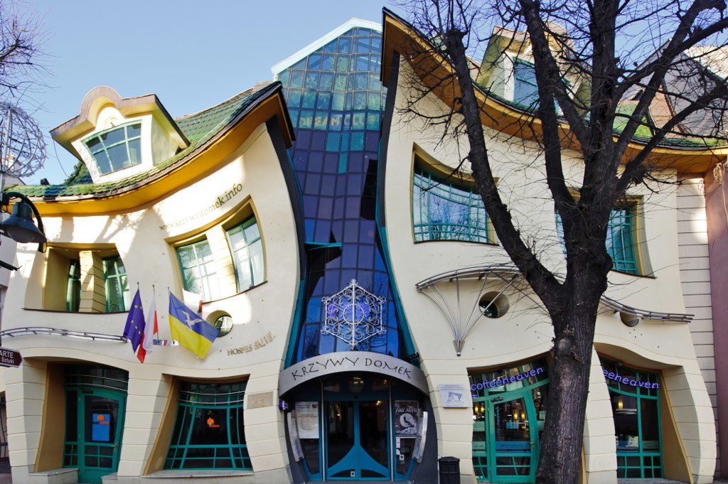 Этот странный дом является достопримечательностью местечка Шимбарк в Польше. Конструкция расположена вверх ногами, а вход осуществляется через окно на чердаке. На постройку ушло менее полугода, а символизирует она переворот в сознании людей, случившийся в эпоху коммунизма. Автор этого творения – Даниель Чапевски.