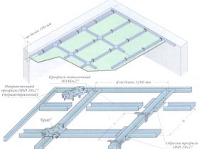 Расчет же потолочного профиля зависит от того, какую кратность имеет гипсокартонный лист. Расстояние между поперечинами – 600, по крайней мере – не меньше 500 мм. От общего показателя зависит количество поперечин, чтобы вычислить их длину, нужно умножить длину одного куска на количество. Складываете две цифры, общую сумму делите на длину одного профиля, округляете до целого числа.