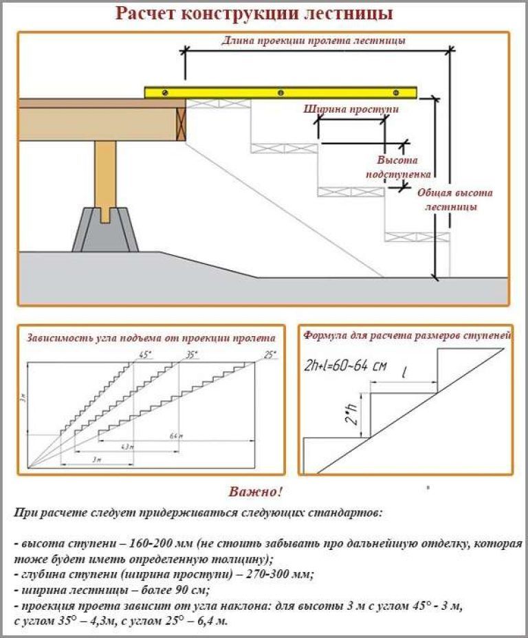 Как сделать расчет ступеней лестницы, зная длину и высоту проема