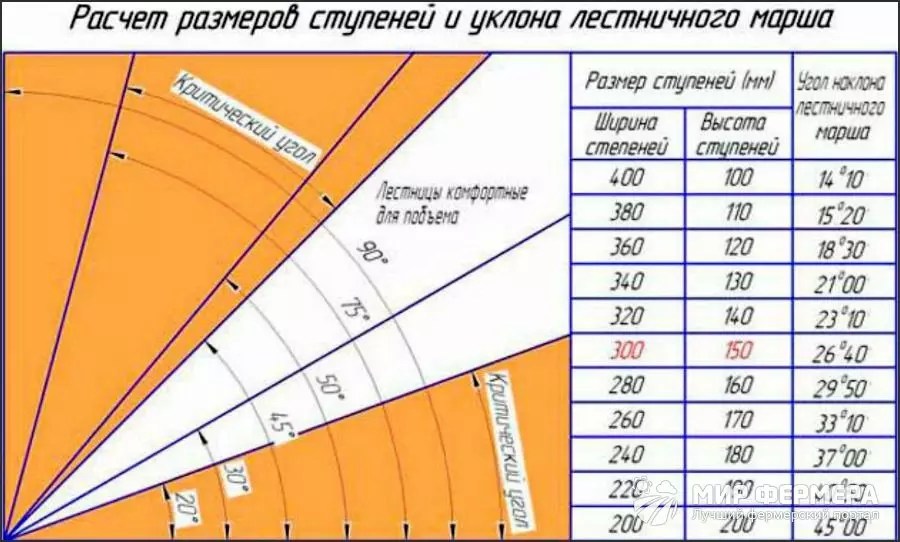 Сделать расчет ступеней лестницы можно благодаря специально разработанной таблице