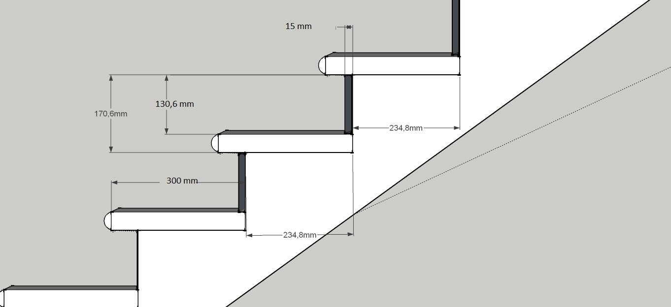 Когда уже определена высота, ширина, ширина ступеней, высота подступенка, и угол наклона, то можно создавать чертеж и осуществлять монтаж.