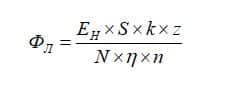 - z – коэффициент на поправку – необходим в тех местах, где назначение помещения предусматривает выполнение какой-либо кропотливой или точной работы, величина коэффициента устанавливается 1,1 для люминесцентных и светодиодных ламп;