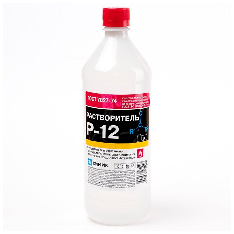 Среди множества предложений магазинов лакокрасочных изделий на полках можно увидеть прозрачную ёмкость с надписью «Растворитель Р-12» – это что? Это однородная жидкость на основе толуола, которую нельзя нюхать без защитных средств. Состав отличается ярко выраженным химическим запахом.