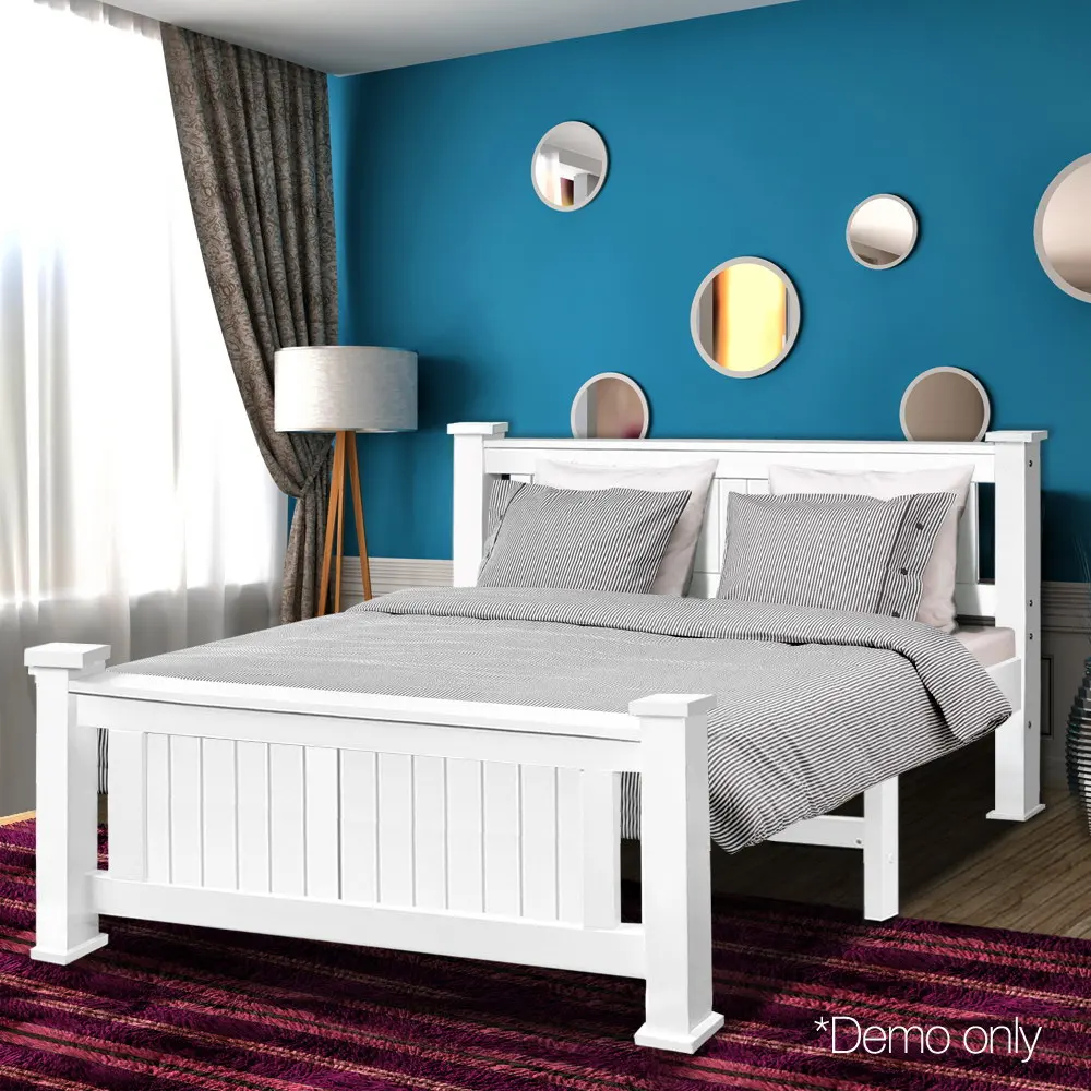 .204 X 149cm Двойной деревянный каркас кровати Белый с гладкими краями Кровать для взрослых и детей Удобная кровать | |