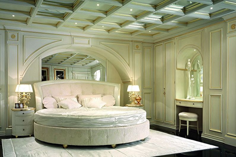 Дизайн спальни, дополненной круглой кроватью, априори не может быть стандартным. Подобная мебель призвана создавать уникальные решения для интерьера, а не превращать его в обыденность и серость.