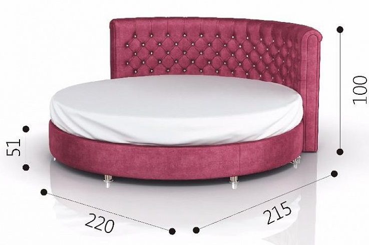 И отечественные, и зарубежные производители мебели склоняются к тому, что самый оптимальный диаметр изделия округлой формы варьируется от 200 до 280 см. Показатель в 280 см прекрасно подходит для модели двуспальной кровати. Высота колеблется от 22 до 102 см. Существуют модели неидеально круглой формы, с нестандартными размерами, например, 2950 х 2650 см. Такое ложе также выглядит весьма оригинально и может стать акцентным дополнением интерьера.