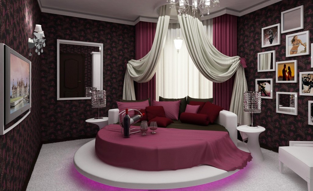 Необычная форма, плавность линий, отсутствие острых углов — эти свойства мебели притягивают к себе большое количество взглядов, поэтому свою решающую роль в интерьере спальни круглая кровать сыграет обязательно.
